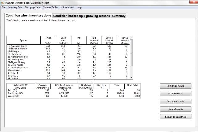 | Window displaying the first part of the results of an analysis by TIGER for Estimating Basis |