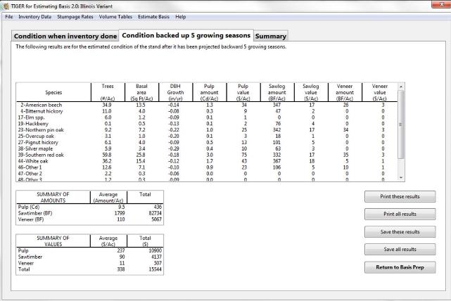 | Window displaying the second part of the results of an analysis by TIGER for Estimating Basis |