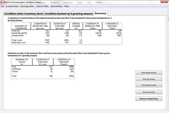 This page displays the results on the right most tab of the results section. It displays a summary of the results.