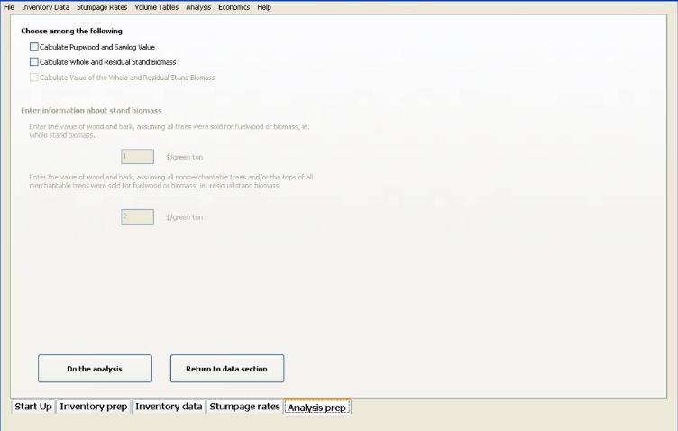 This page is for setting up an analysis of a 100% inventory. The page has less options than the page for a traditional inventory because no estimates of future conditions are made.