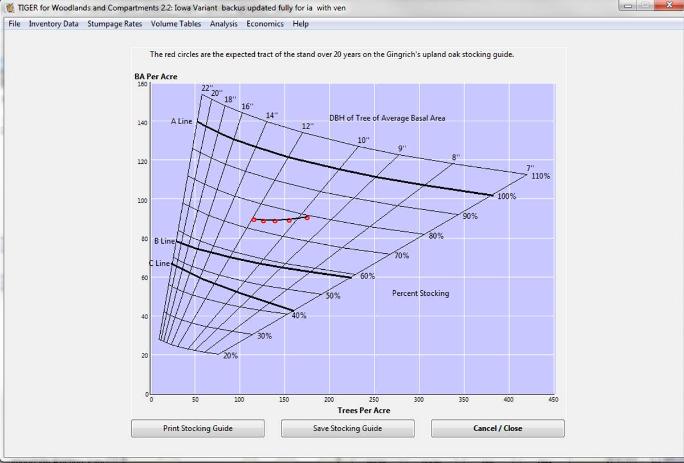This page shows the results of an economic analysis done on a thinned stand. TIGER for Woodlands and