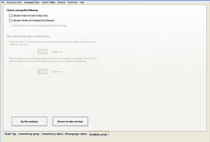 This page is for setting up an analysis of a 100% inventory. The page has less options than the page for a traditional inventory because no estimates of future conditions are made.